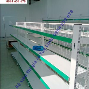 Tuệ Linh chuyên phân phối và lắp đặt mẫu Kệ siêu thị đôi lưng lưới 1m5 x1m2 x 8 tầng mâm. Sản phẩm được thiết kế với nhiều màu sắc khác nhau, quý khách hàng có nhu cầu hãy liên hệ với chúng tôi để được tư vấn lắp đặt miễn phí.